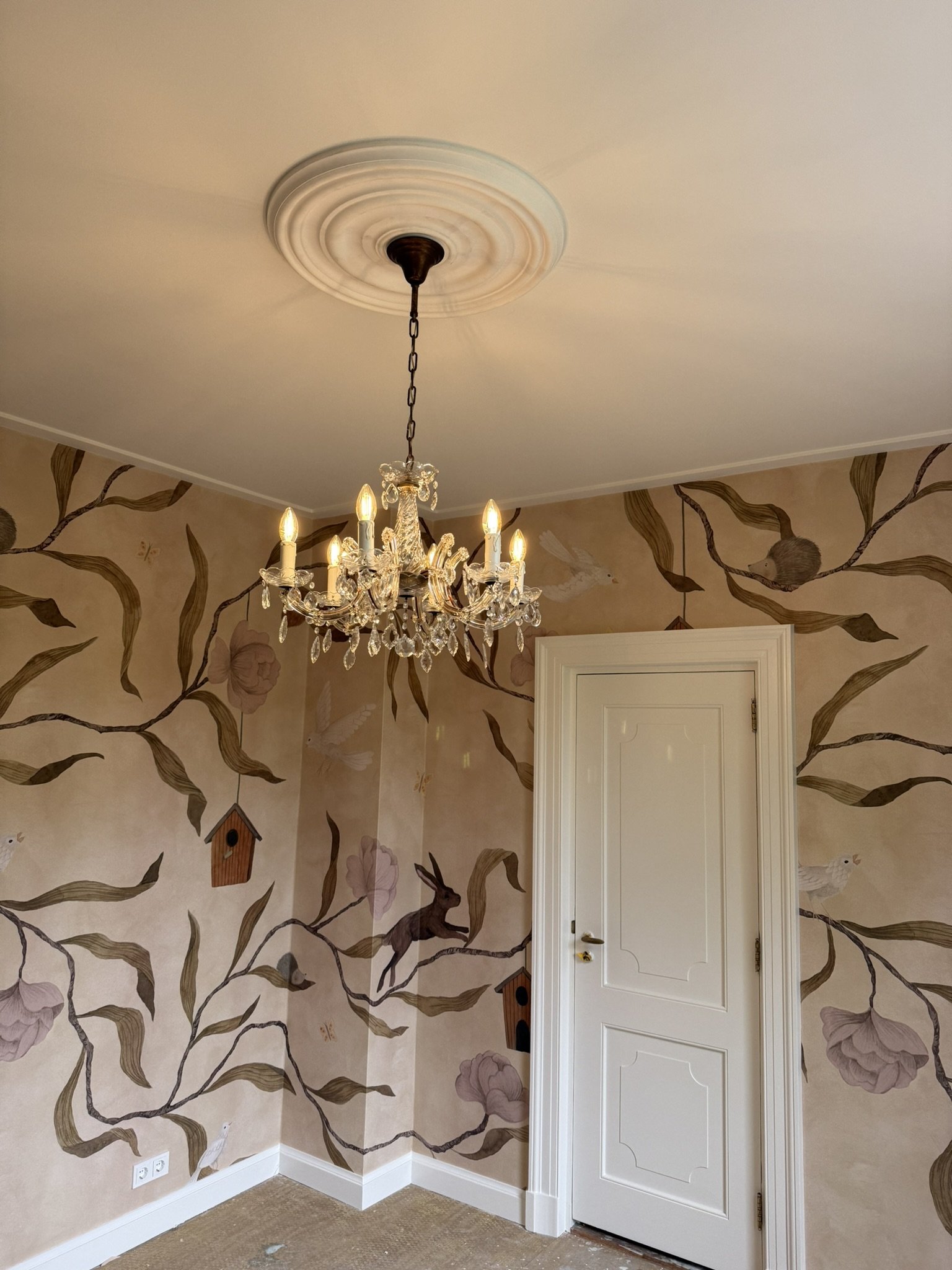 Omdat er geen plafondverlichting aanwezig was, is deze nieuw gecreëerd. Bij ‘het schippertje’ zijn prachtige ornamenten voor op het plafond te vinden, wat de ruimte extra sfeer en karakter geeft.