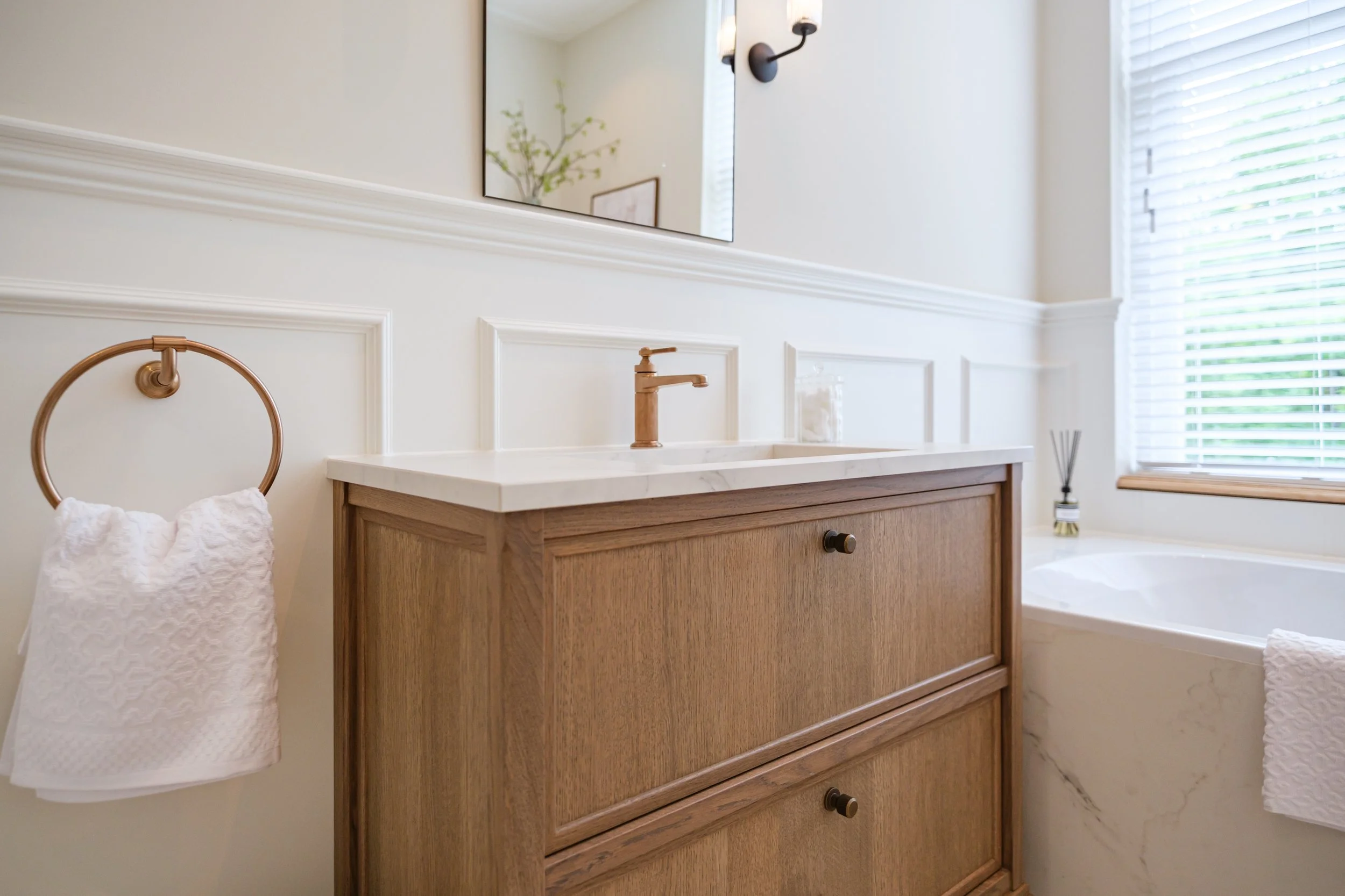 Het resultaat is een tijdloze badkamer die perfect past bij de woning en tegelijkertijd voorzien is van alle moderne gemakken.